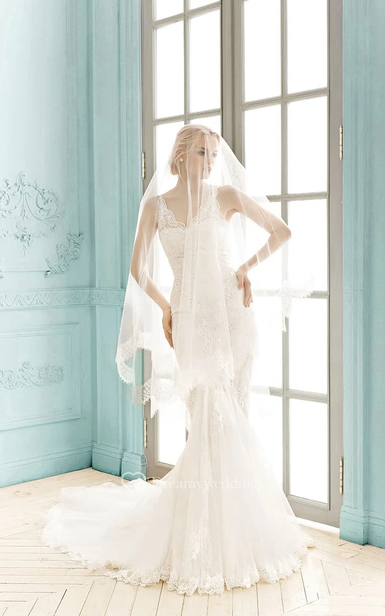 V-neck Sleeveless Lace Sheath Appliques Dress
