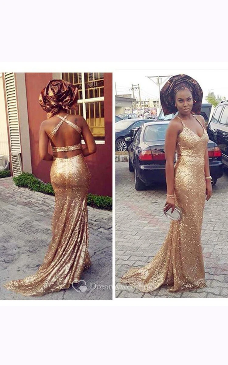 V-neck Sleeveless Long Dress with Allover Sequins