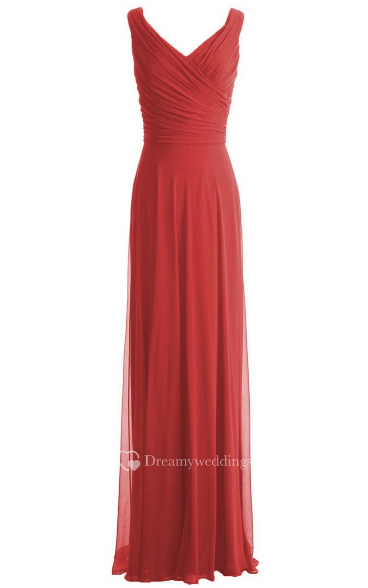 V-neckline Floor-length Dress With Zipper Back