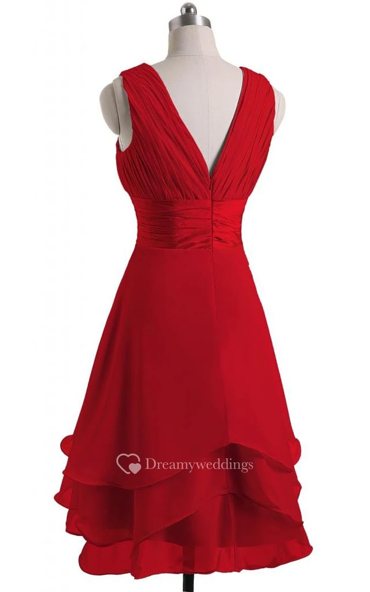 V-neckline Layered Bridal Dress With Satin Belt