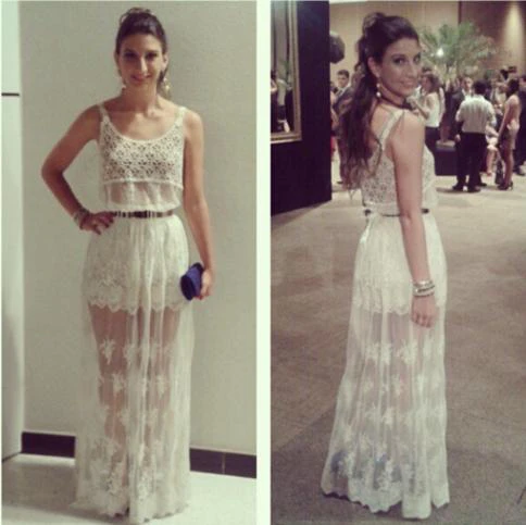 Vestidos White Lace Prom Dress Formales Babyonlinedress Chiffon Jewel Waistband Evening Dress