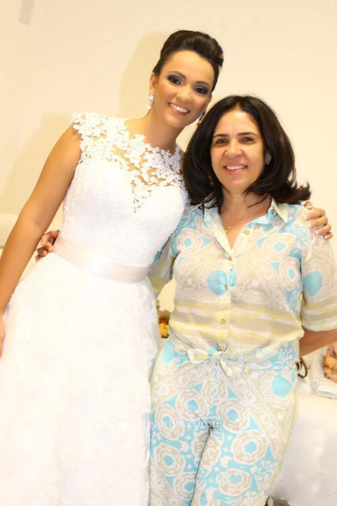 Vintage A Line Detachable Train Sheer Neck Bridal Gown