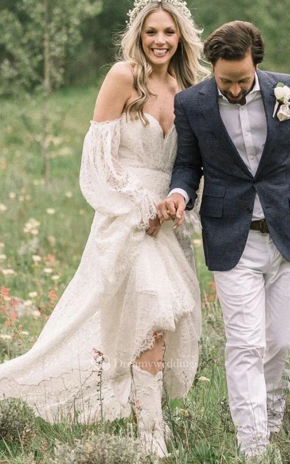 Vintage A Line Lace Floor-length Court Train Open Back Zipper Wedding Dress with Ruching