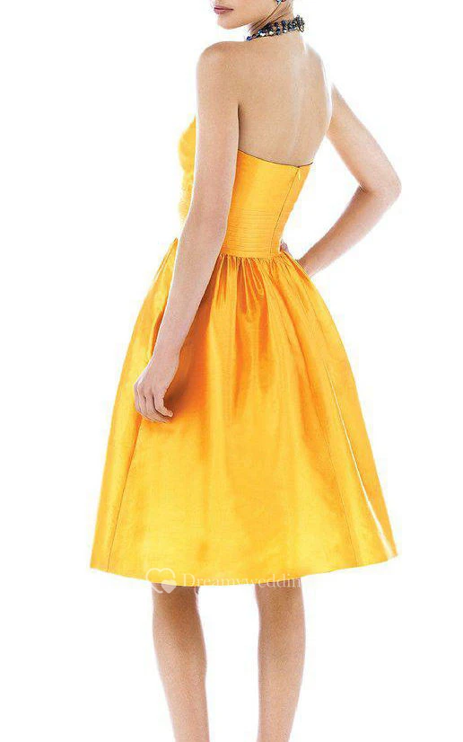 Vintage A-line Pleated Short Satin Dress