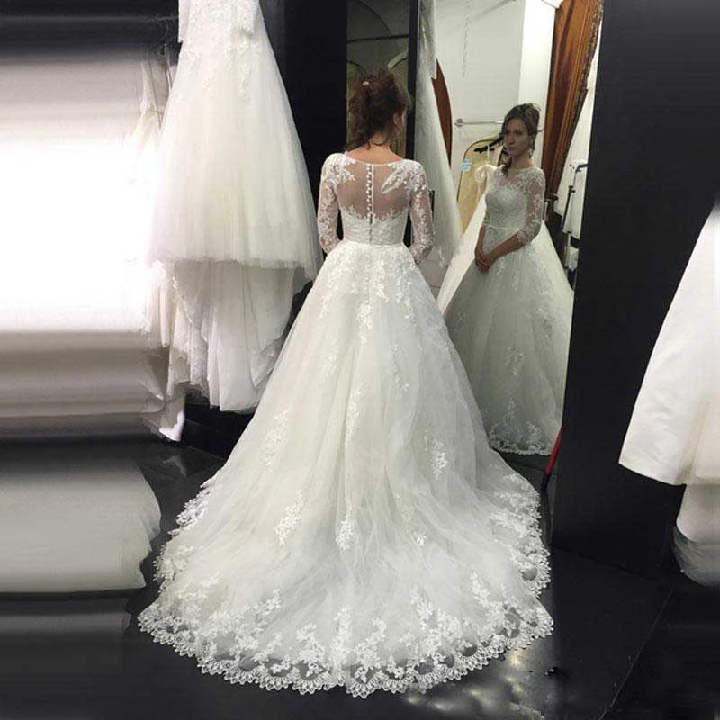 Absolute perfection! I was so nervous spending this much money on a dress I hadn't even tried on but omg this wedding dress is exactly the same as the photo. The lace and tulle quality is better than I could have ever imagined. Customer service was so easy to work with from start to finish. I can't thank you enough!
