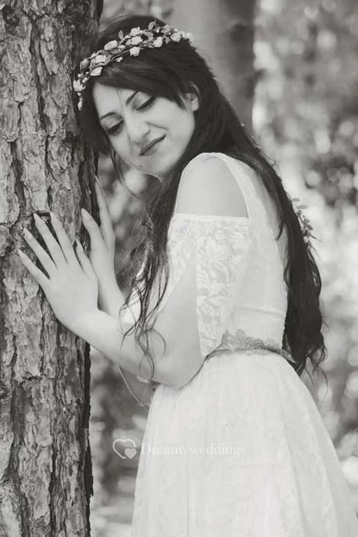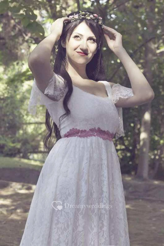 Vintage Lace Floor-Length Wedding Dress With Low-V Back And Sweep Train
