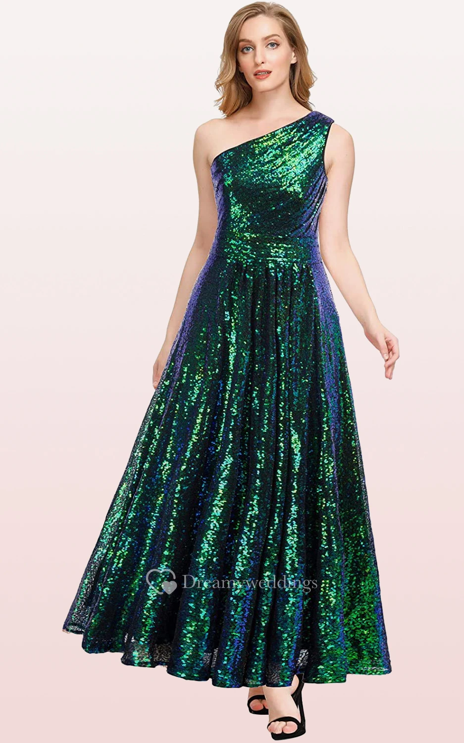 Vintage One-shoulder A Line Sleeveless Ankle-length Sequins Bridesmaid Dress With Ruching