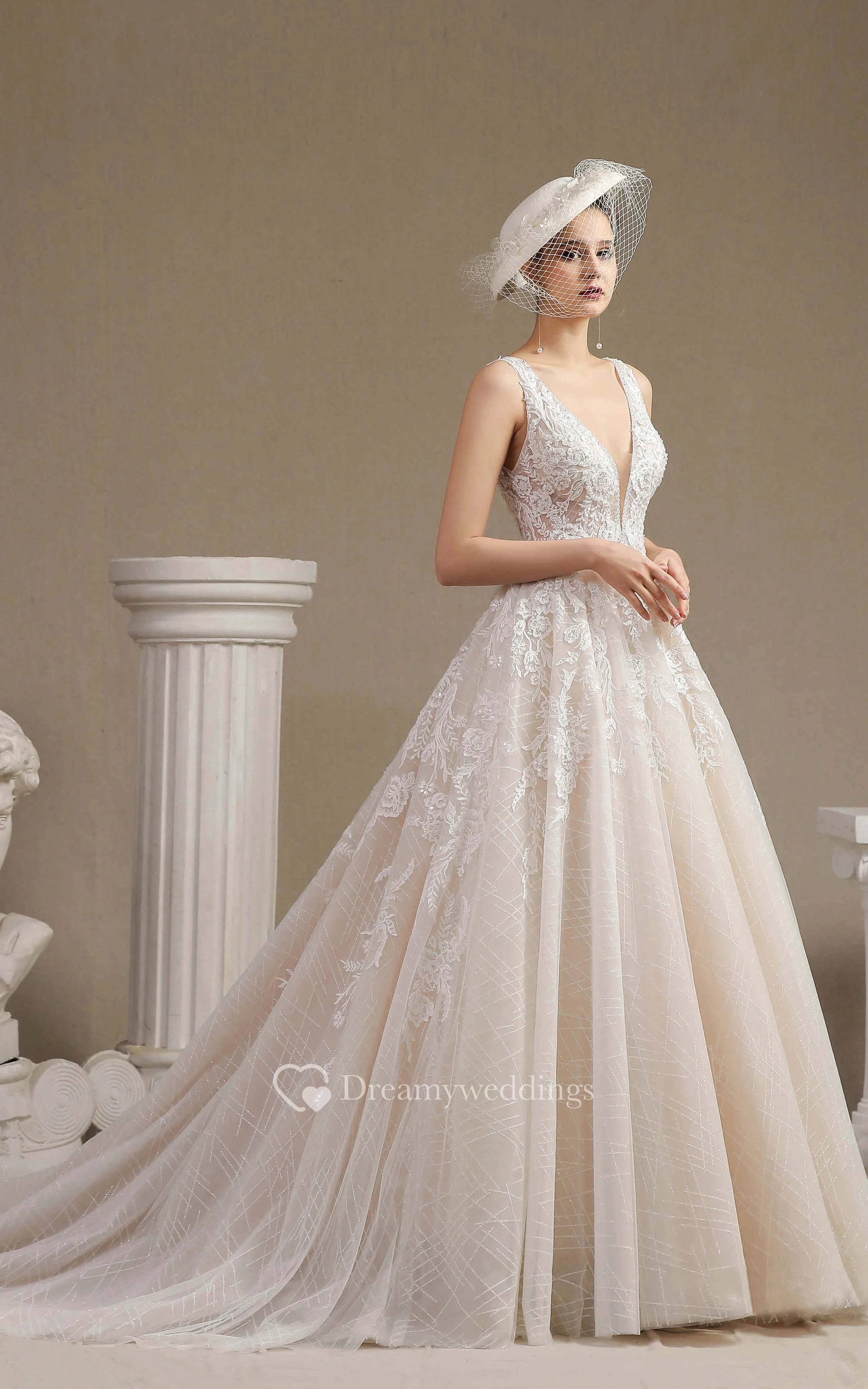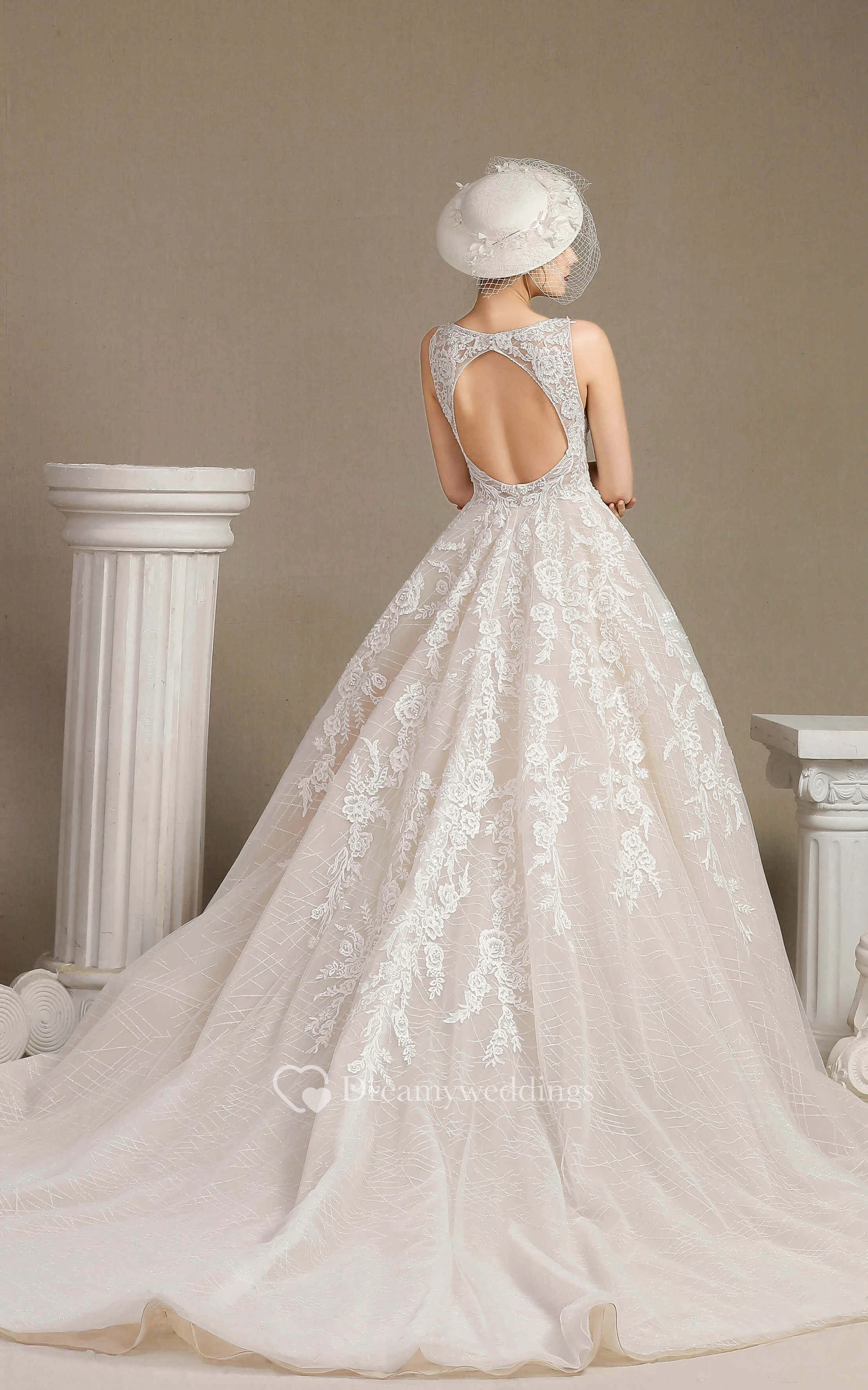 Vintage Plunging V-neck Keyhole Sleeveless Ballgown Wedding Dress With Lace Appliques And Ruching