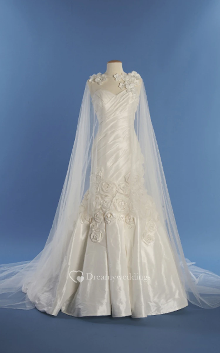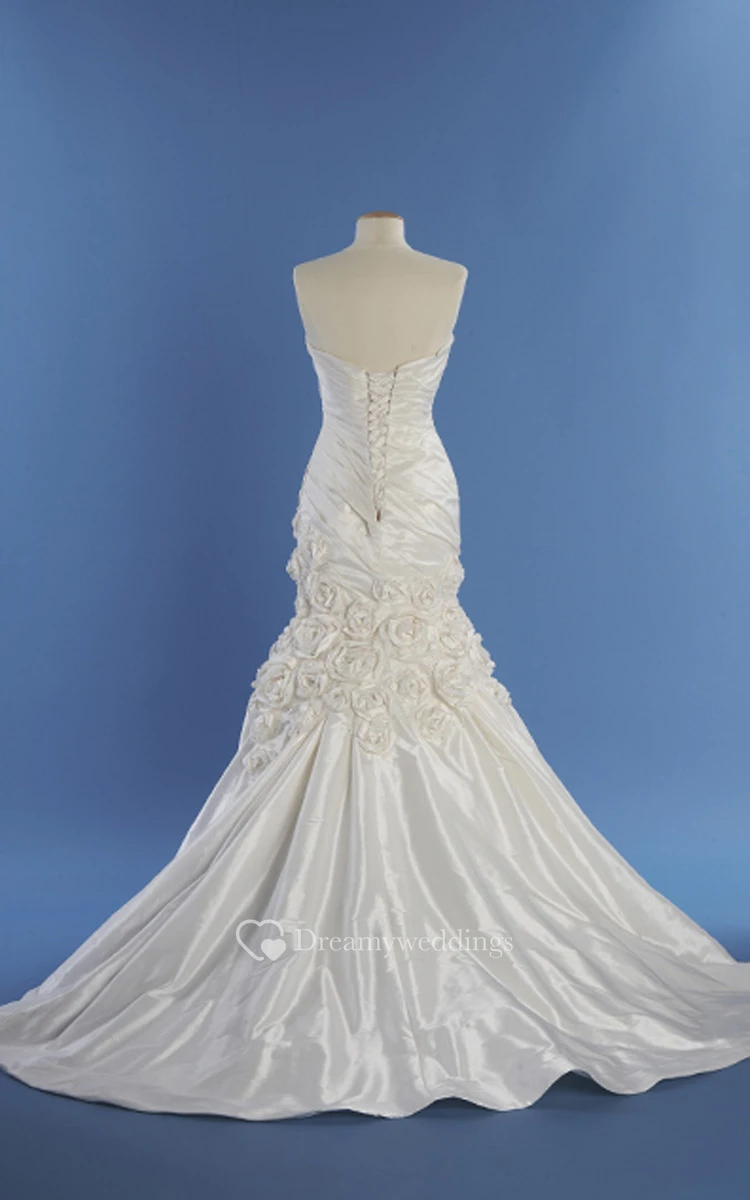 Vintage Satin Gown With Flowers And Watteau