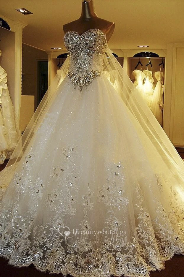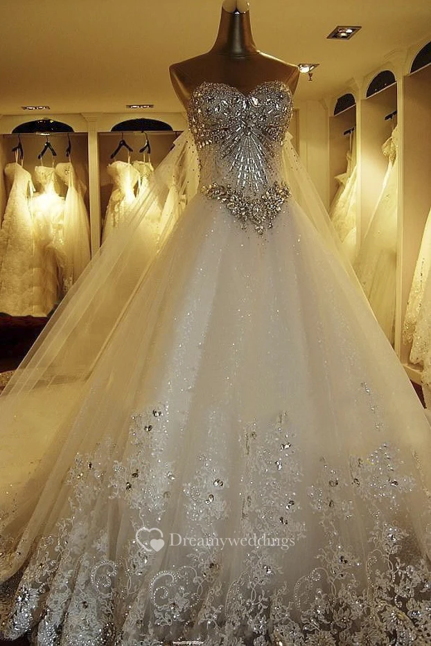 Watteau Train Luxury Strapless Sweetheart Wedding Dress With Train And Beading And Lace Appliques