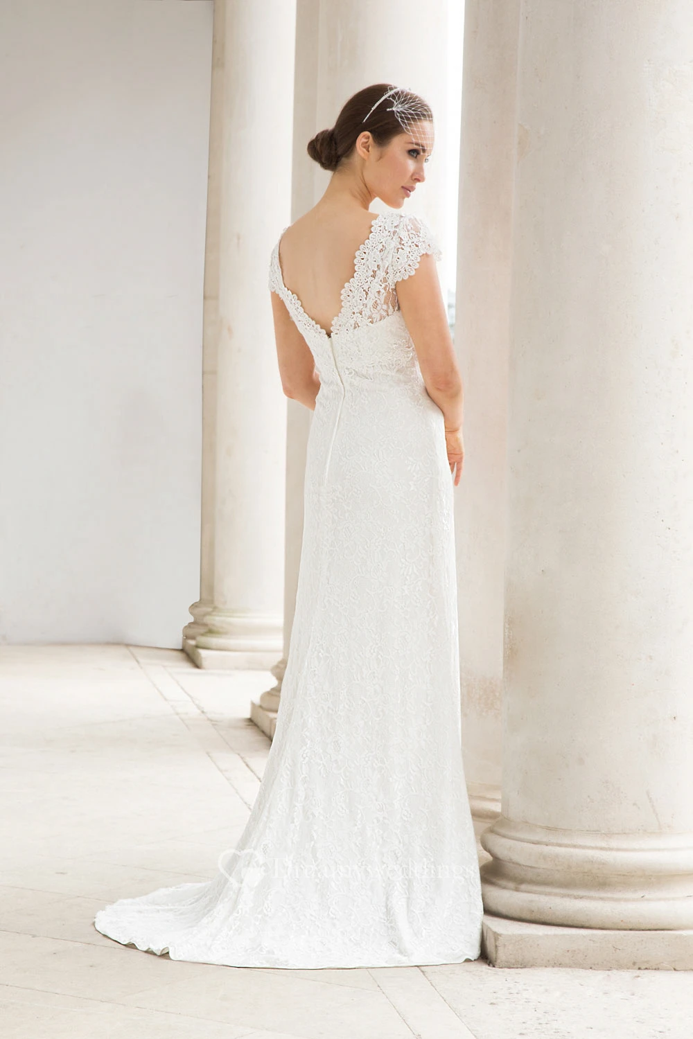 Sheath Floor-Length V-Neck Cap Lace Appliques Sweep Brush Train Low-V Back Dress