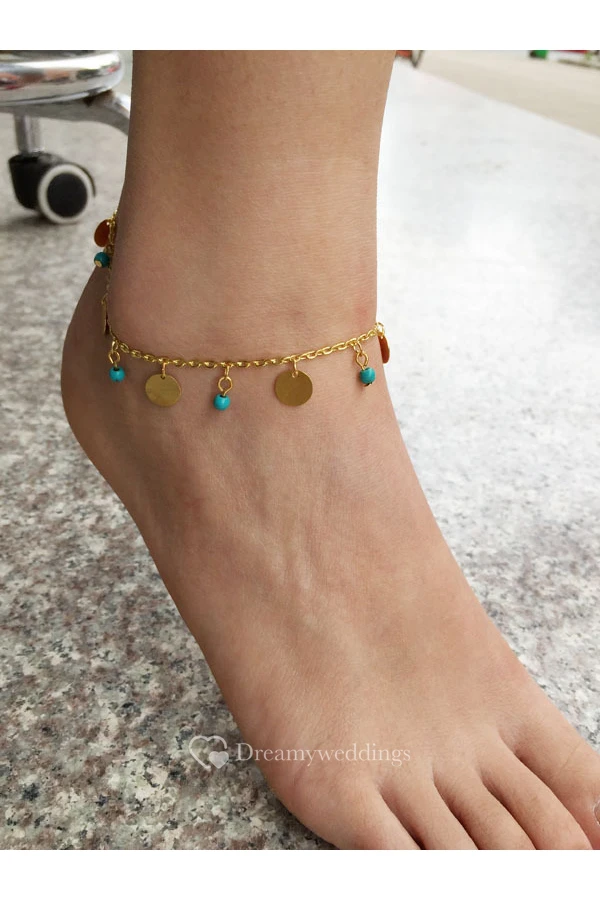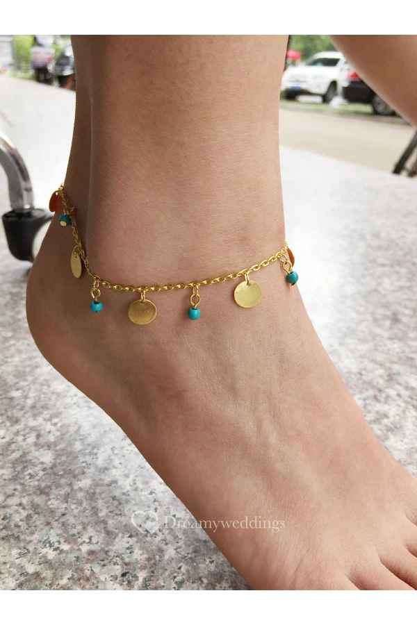 Western Style Summer Popular Foot Simple Turquoise Wafer Anklet