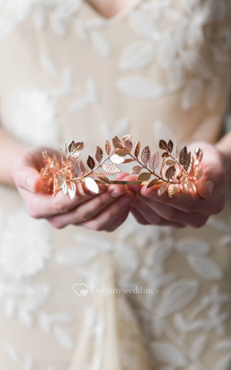 Western Style Vintage Handmade Laurel Olive Gold Hair Hoop Crown