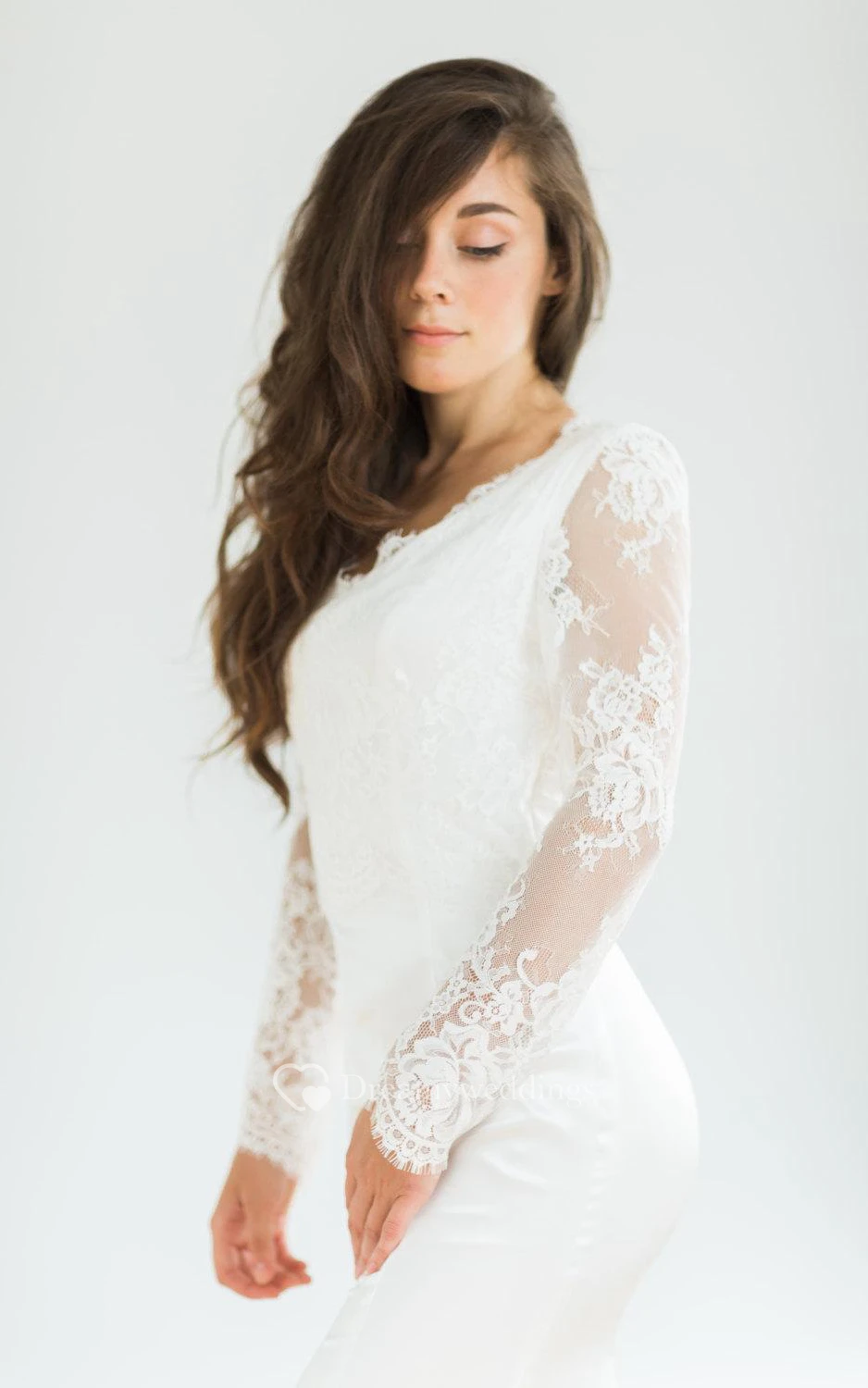 White Vintage Style Mermaid Wedding With Long Lace Sleeves Dress