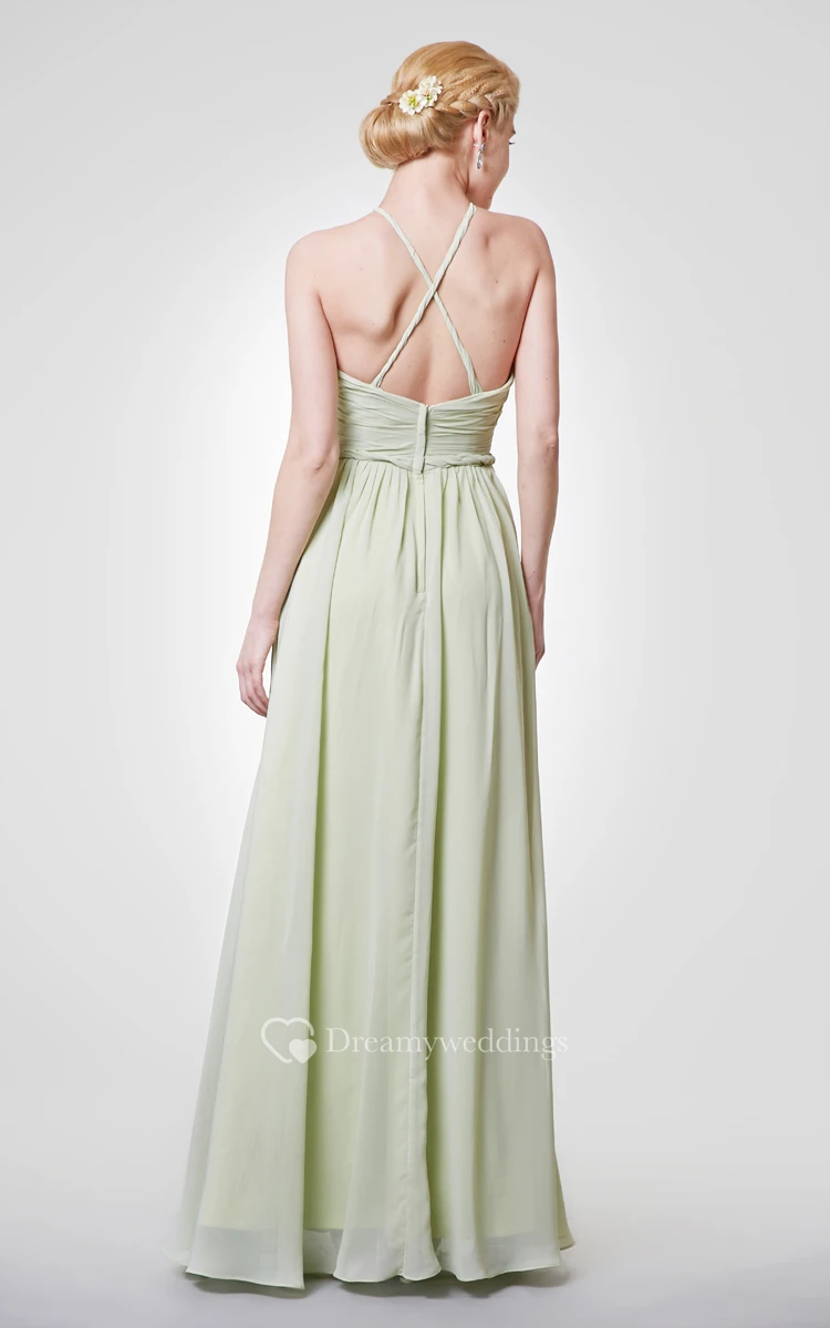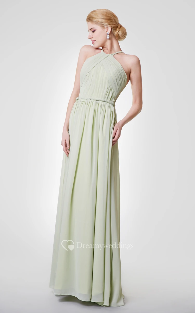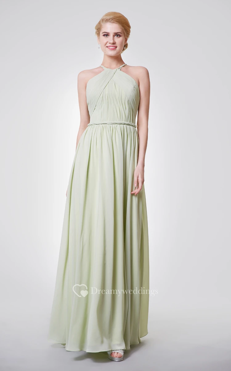 Wonderful A-line Pleated Chiffon Long Dress With Knot Belt